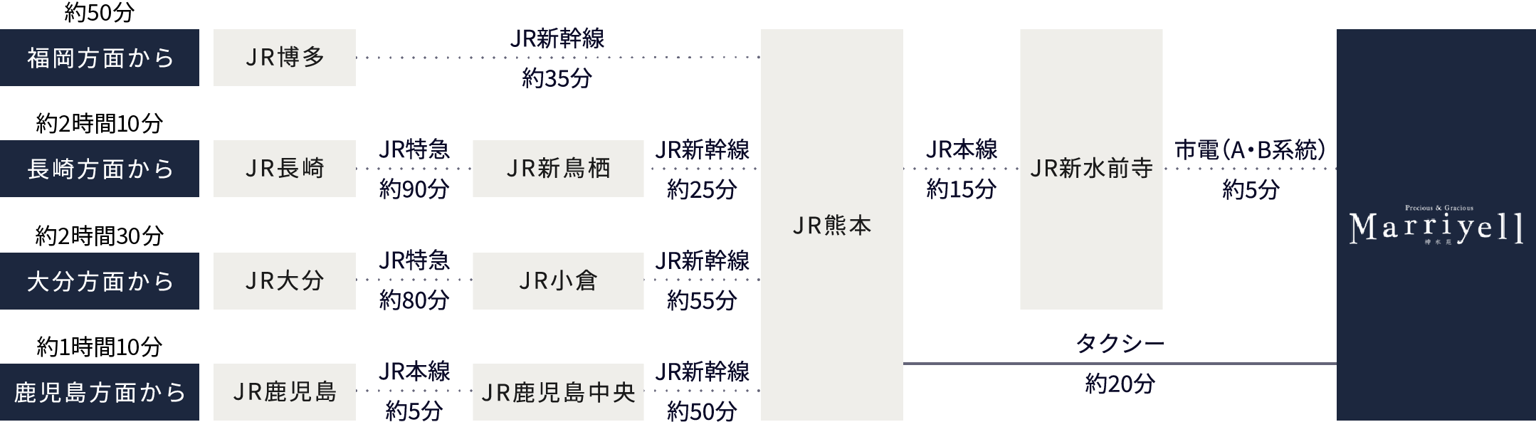 - JR鹿児島中央JR新幹線 約50分
