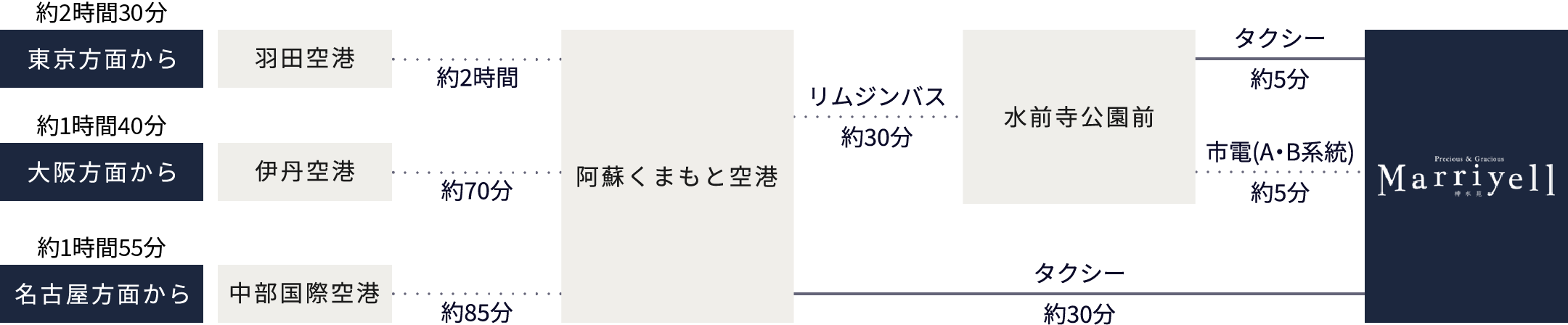 - 阿蘇くまもと空港約30分